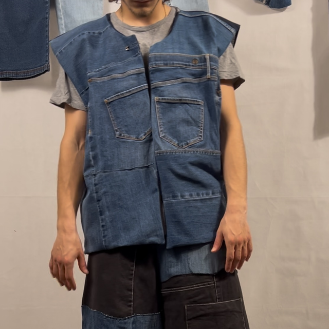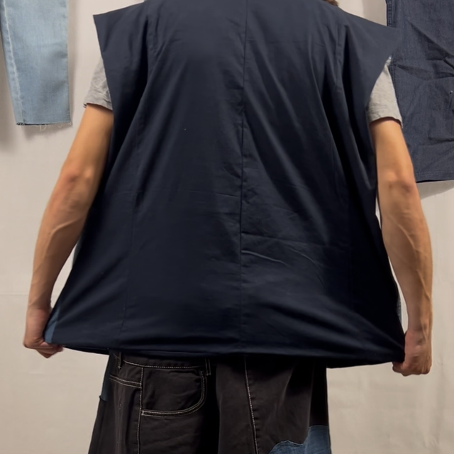 Ce gilet, pièce unique, est fabriqué à la main à partir de vêtements invendus ou jetés. Grâce à l'upcycling, l'artiste NEEDLESS assure un look unique et artisanal.